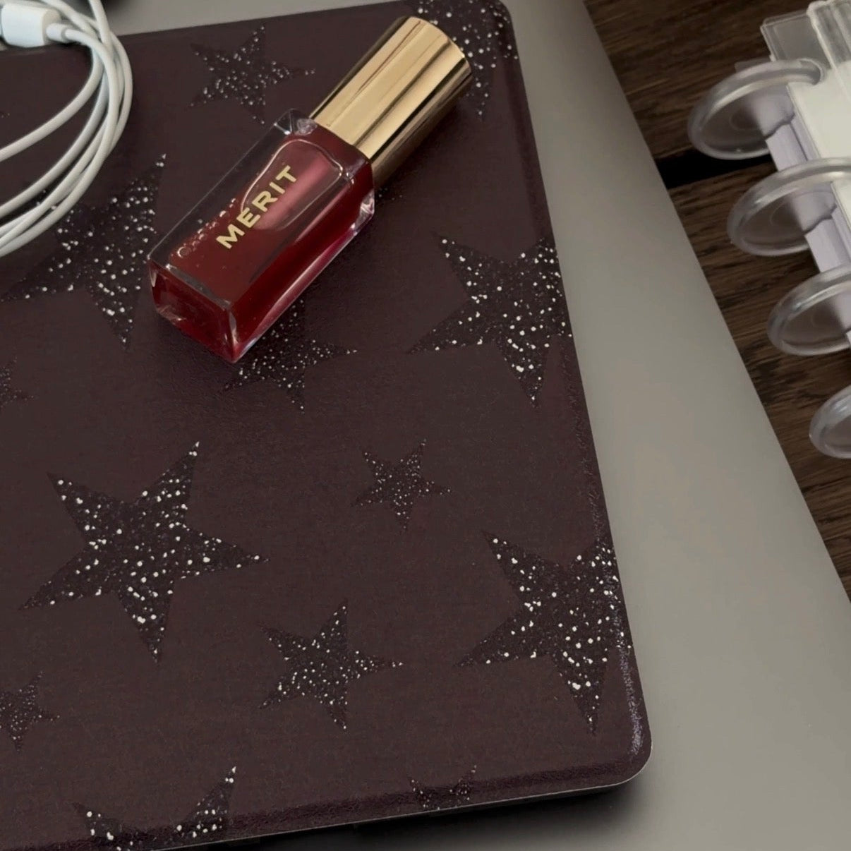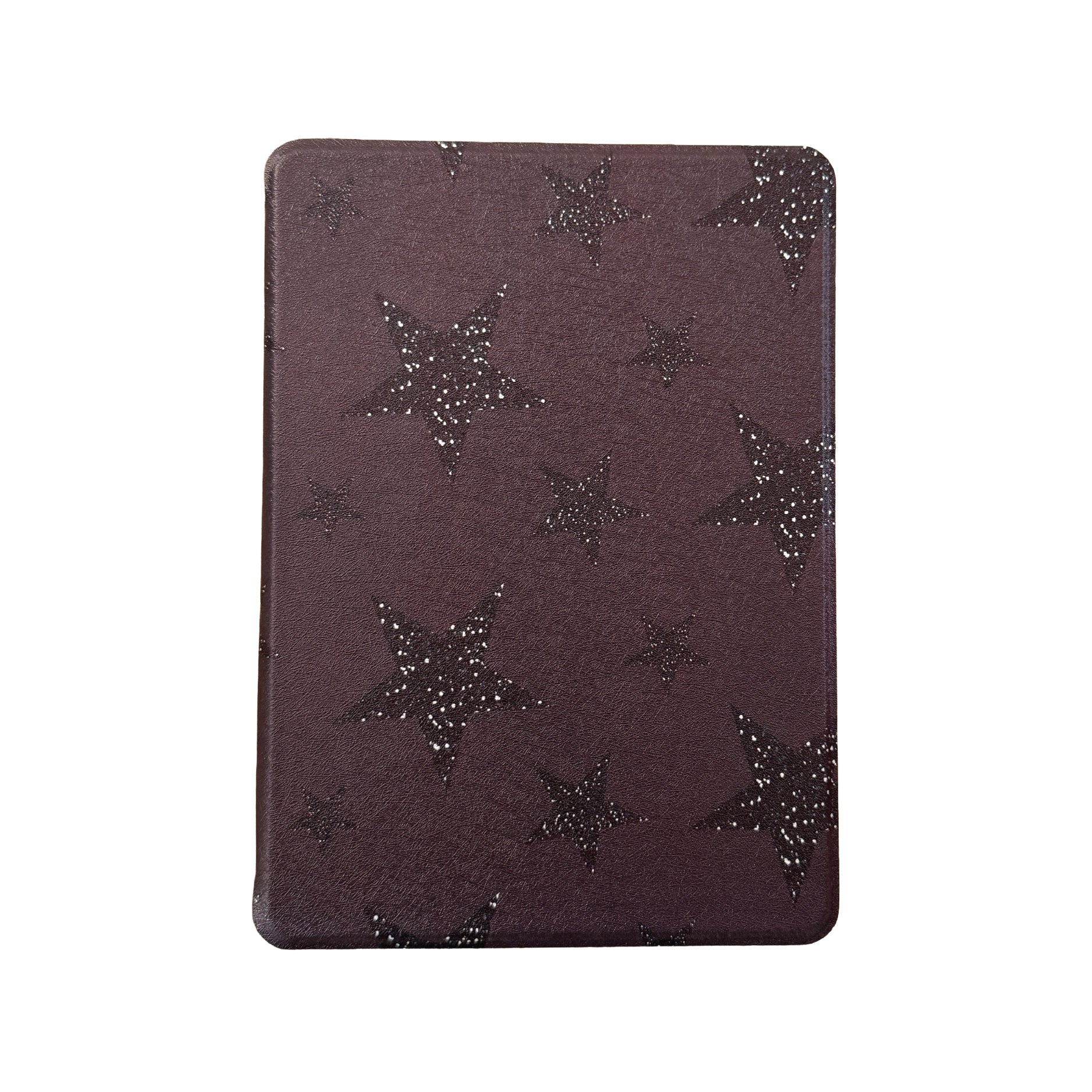The background color of the case is black with a subtle maroon/purple tone. The stars are not actual sparkles - just printed on the case.